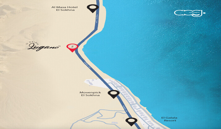 At Kilo 16 Ain Sokhna, behind the iconic Movenpick Hotel on Zafarana Road, we chose to put the foundation of our brand-new coastal Village, Lugano El Galala Ain El Sokhna. Making it an accessible point for owners and their families, without taking a long time to drive to enjoy each moment in a relaxed mood, as well as it is 1 Hour from Cairo, besides being near to many places, For Example: