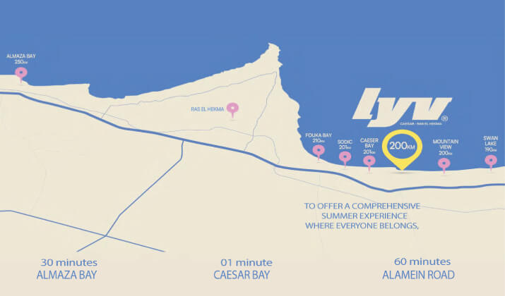 Gates Developments put a strategic plan to make all its clients satisfied in all aspects. As well as it chose to lay the foundation of Lyv Ceaser North Coast in one of the most special sites, that came in 200 KM, Ras El Hekma. To Be easy for owners to reach wherever they want without wasting their time driving. It came near many different roads and vital places, For Example: